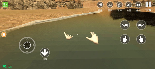 3、左右手指手势,可以操作左右手,拿起物品,比如拿起香皂,抓起马缰绳骑马,当物品出现下方图标提示时,就可以拿起物品或操作物品了。