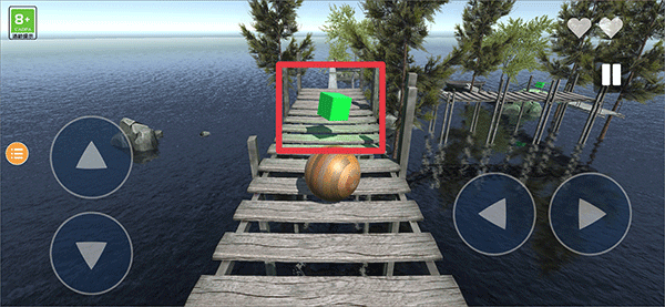 6、游戏开始时一共有5次机会,若球不小心掉入水中,或是落入陷阱时将会被扣除一个爱心,当5个爱心全部扣除时,游戏结束需重头再来