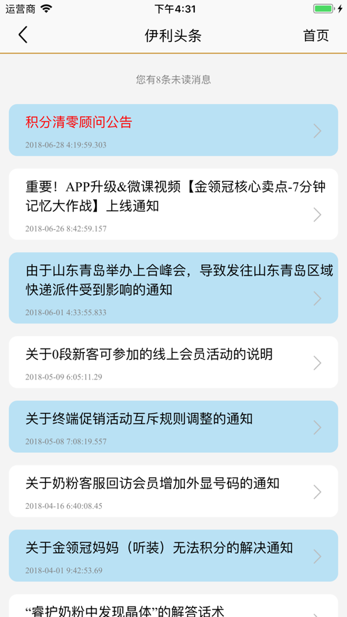 3、通知公告中,营养顾问可随时了解到公司活动、政策调整的内容,可以及时调整营销策略,与公司保持同步。
